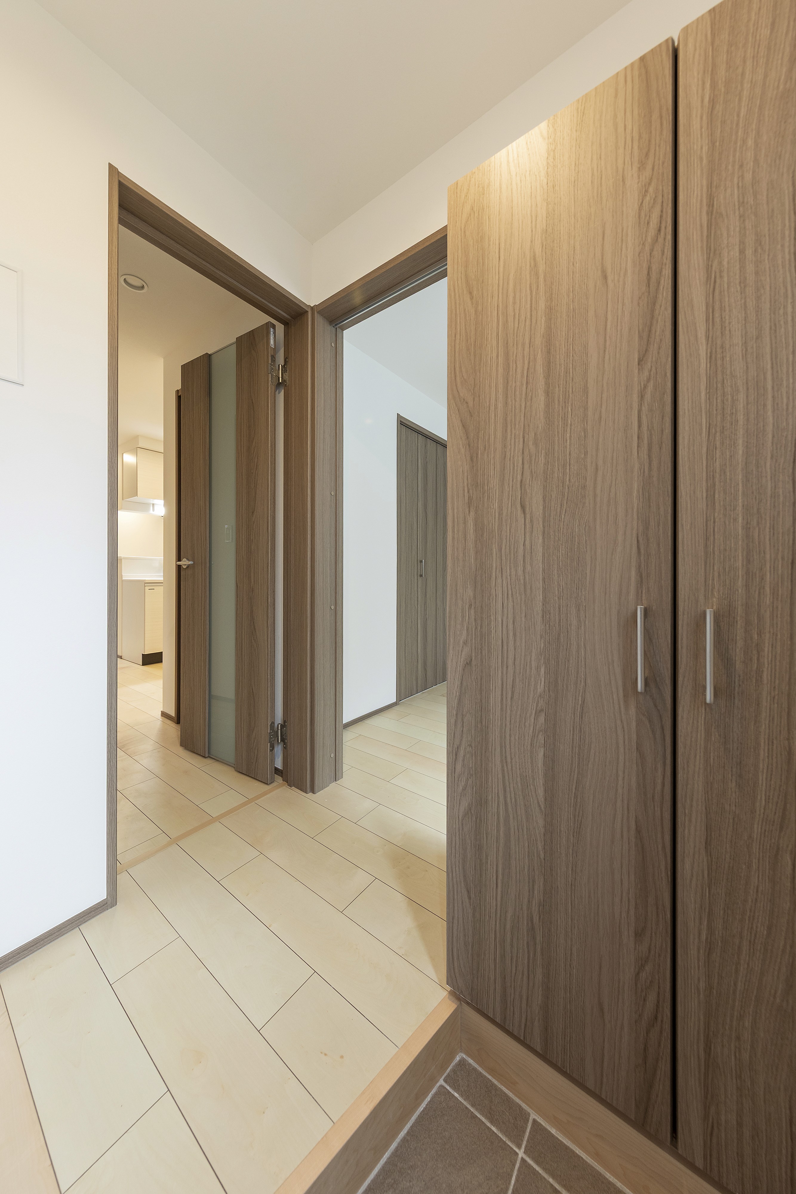 一方、室内は淡い木目と白を基調にし、柔らかい光を取り込む明るい空間としています。外と内で“緊張と安らぎ”のバランスを持たせた設計です。