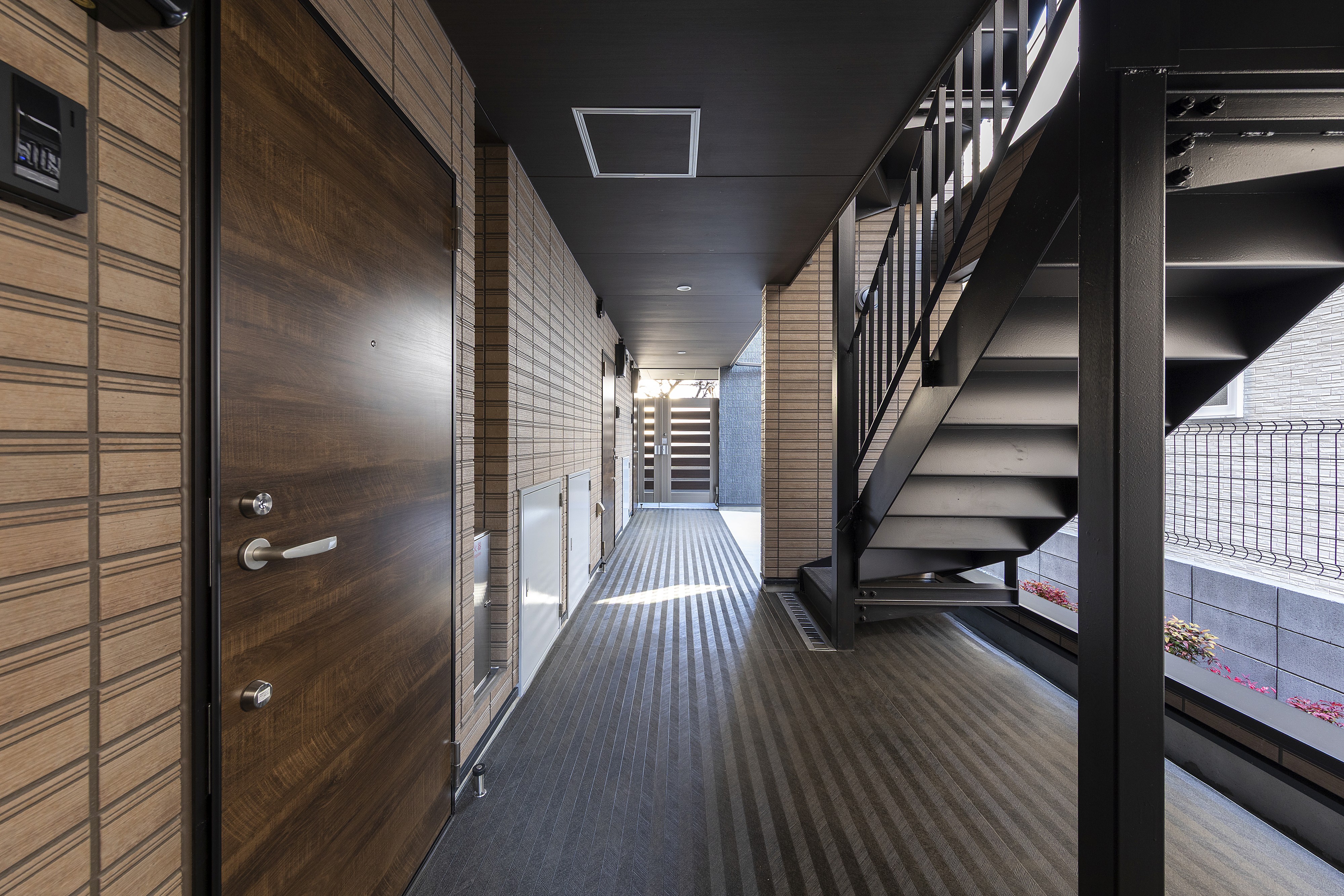 都市の中でも、落ち着きと安心感を得られるよう、外観には重厚感のある色調を選びました。
