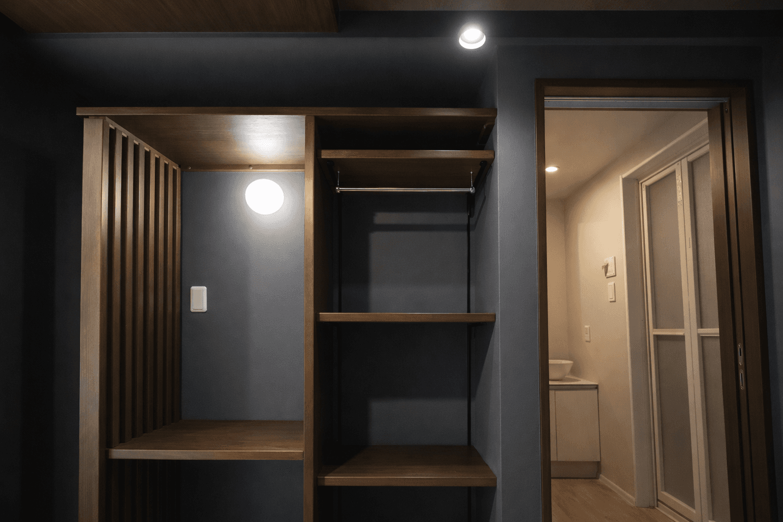 やわらかな間接照明と落ち着いた色調が、空間全体に心地よい奥行きをもたらします。