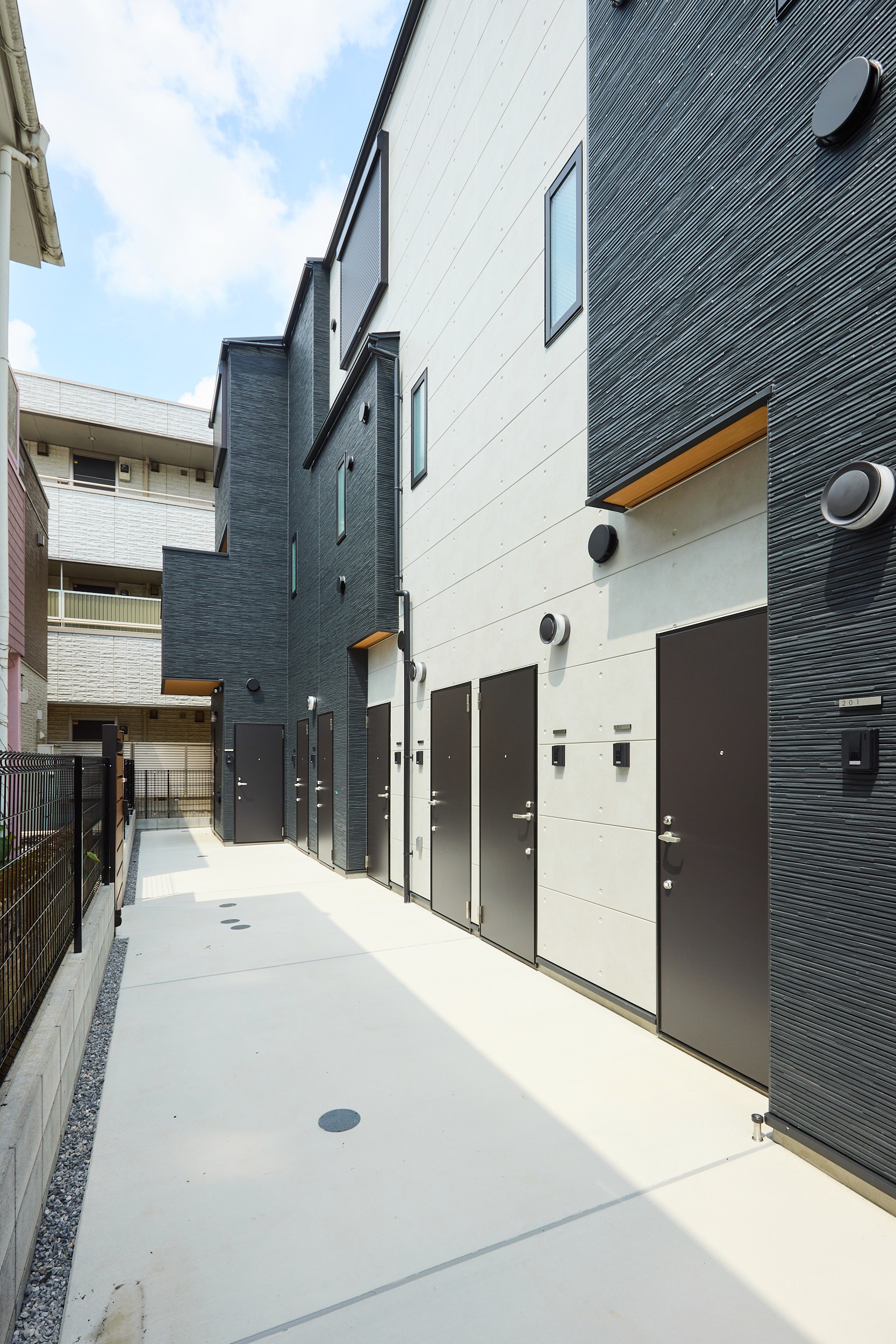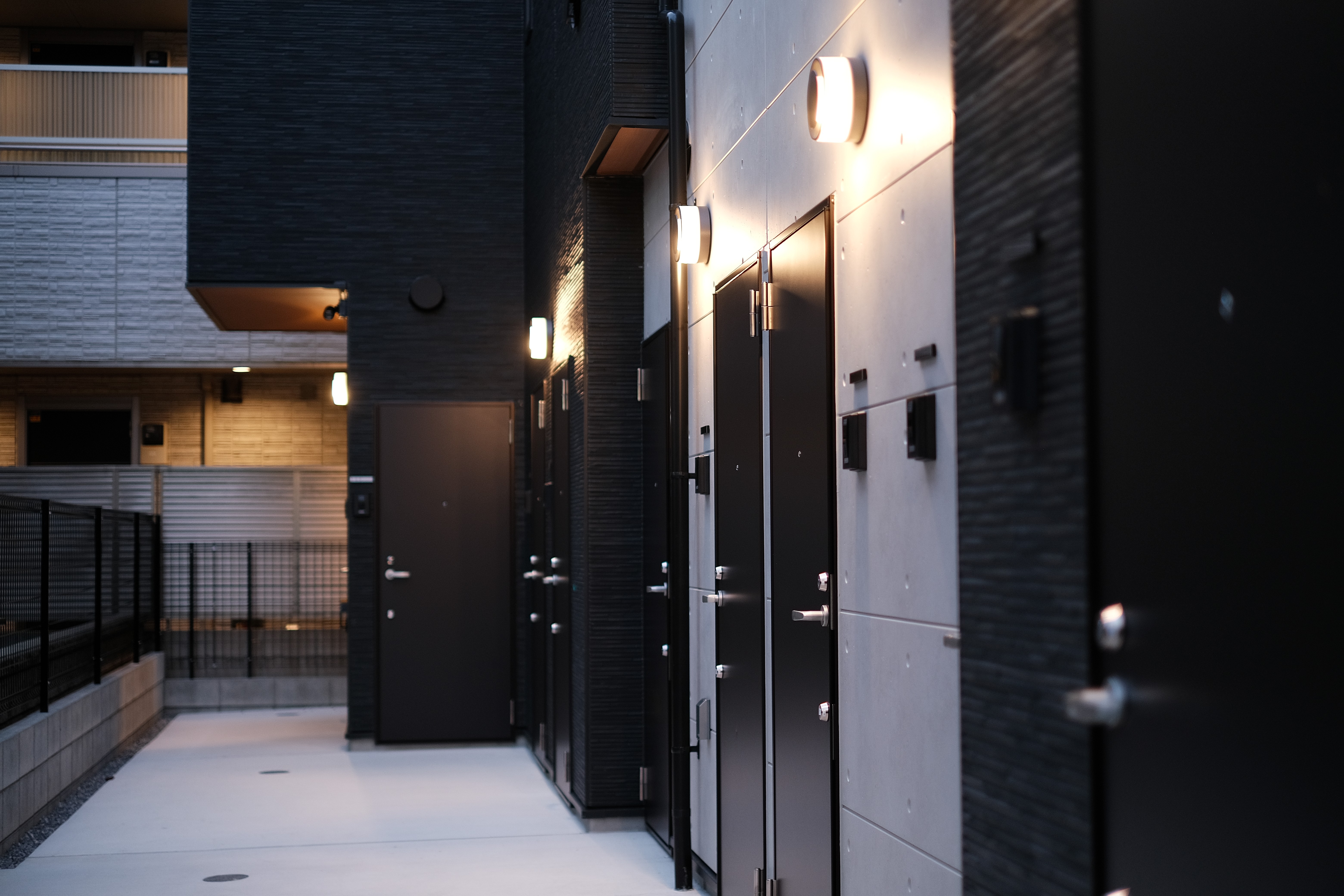 外観は黒の面構成で輪郭を際立たせ、陰影が建物の表情をつくります。