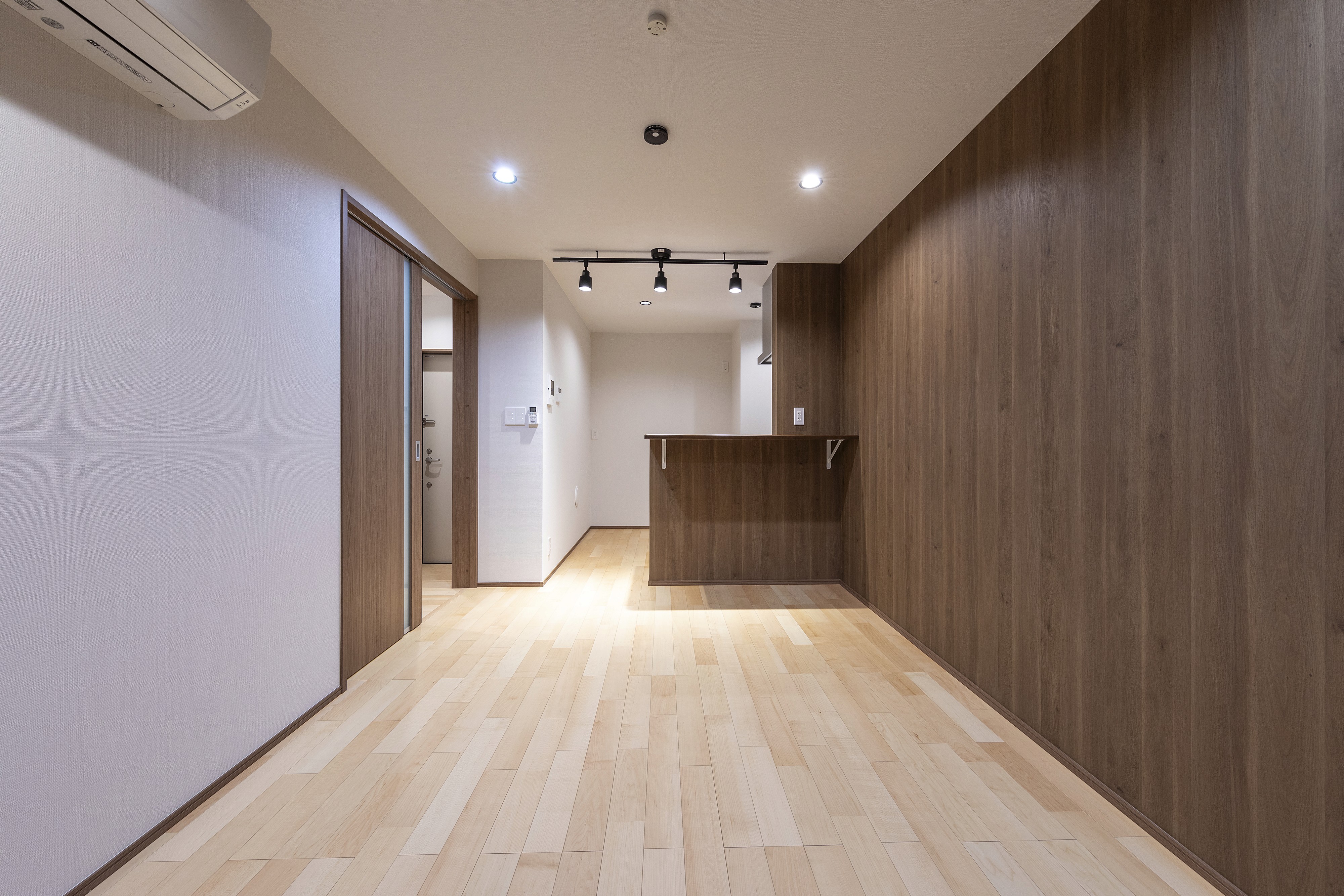温かみのある木目とスタイリッシュなグレーを融合させ、都会的でありながら心が安らぐモダン空間をデザインしました。素材の質感を活かし、日常に上質さを感じられる住まいとして、シンプルながらも印象的な佇まいを目指しました。